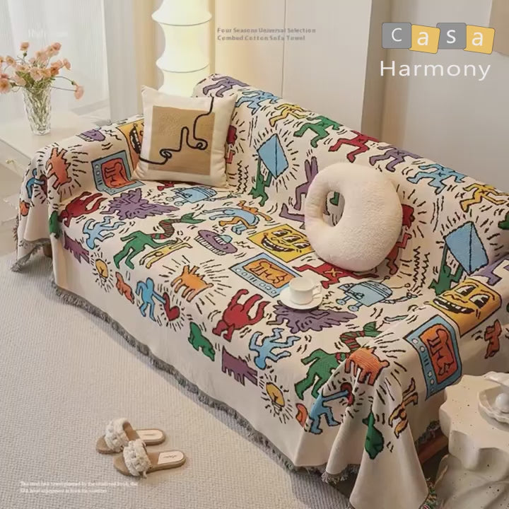plaid jeté de canapé grande taille double face réversible chenille renforcé graffiti