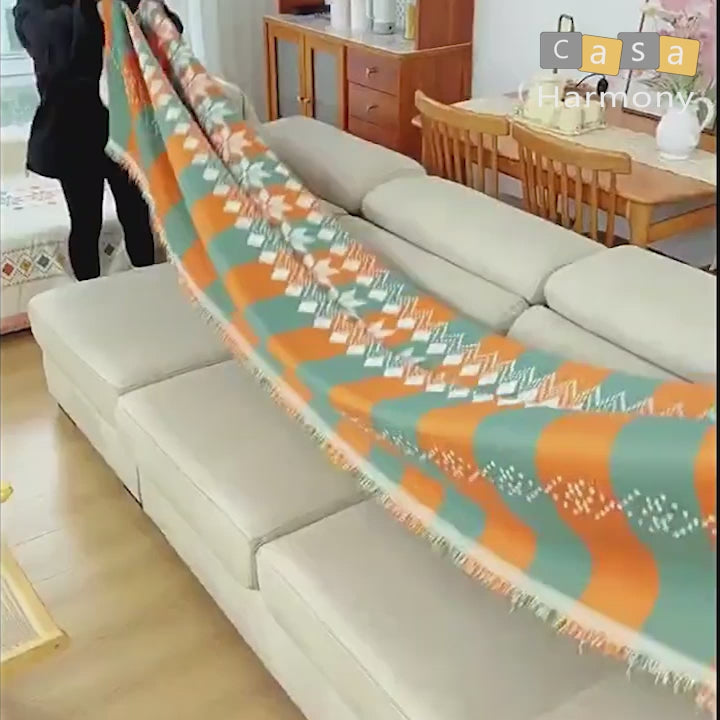 Plaid jeté de canapé grande taille double face style bohème ethnique chenille renforcée